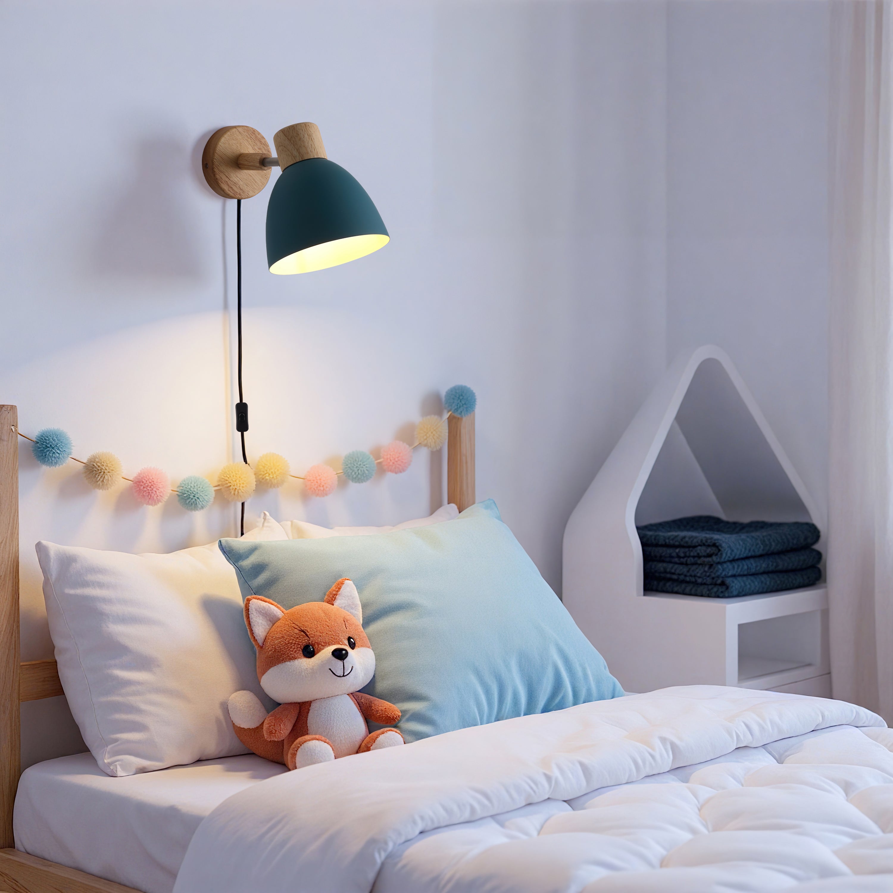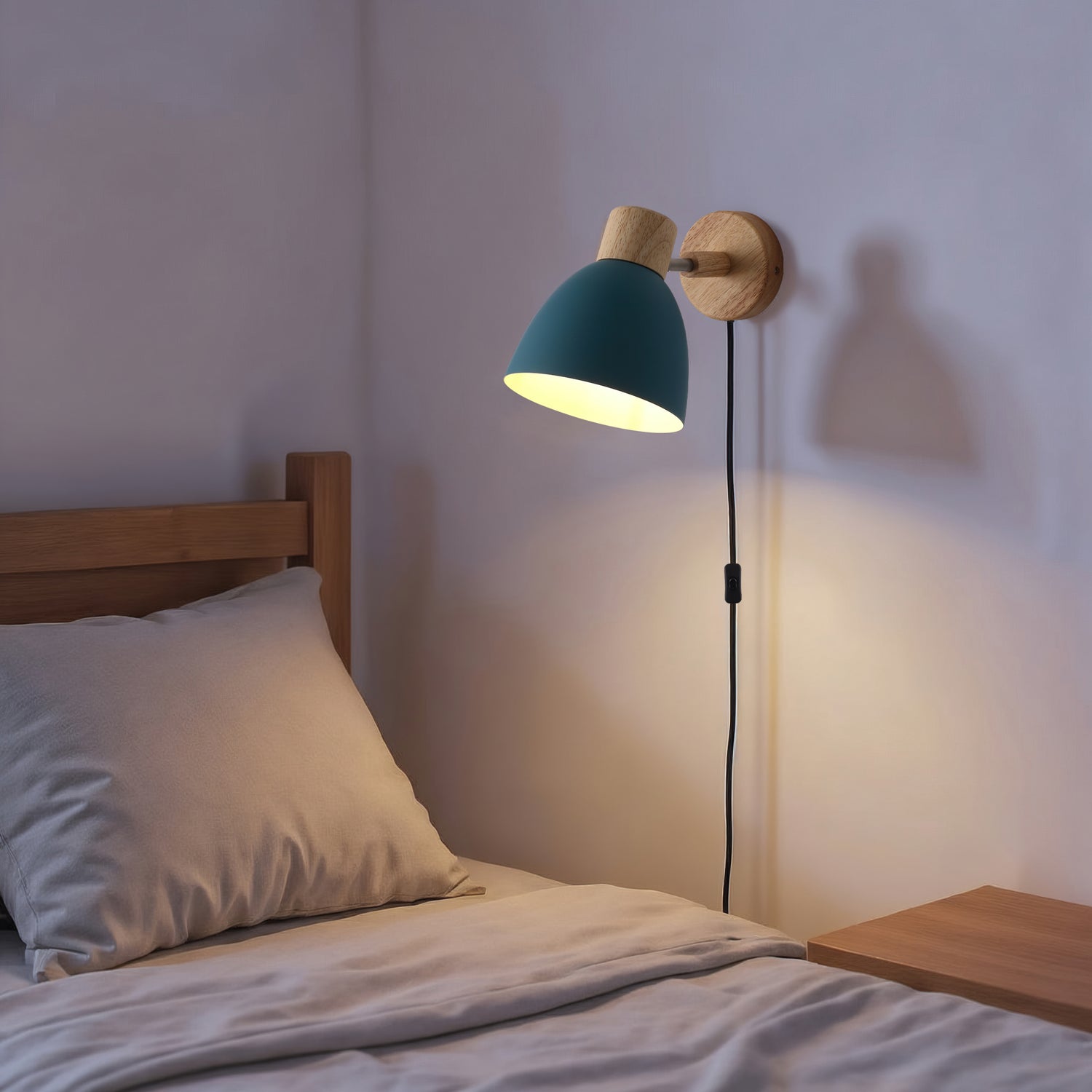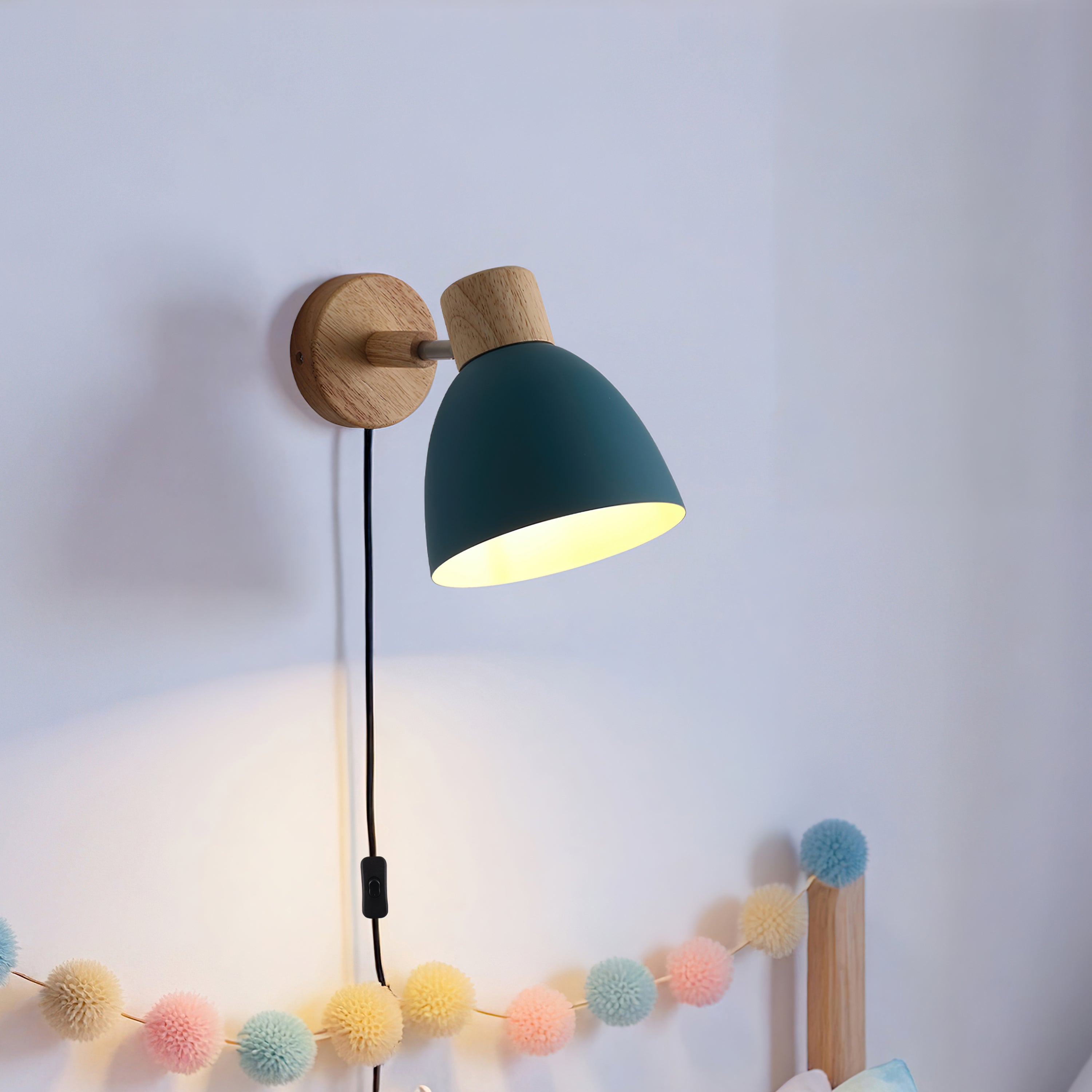 Pino Vegglampe fra Nordic Seasons er en sjarmerende og funksjonell vegglampe som kombinerer naturlige materialer med fargerik personlighet. Den enkle trebasen og skjermen i mattlakkert metall skaper et moderne, men varmt uttrykk som passer perfekt i både soverom, stuer, barnerom og sommerhytter.
